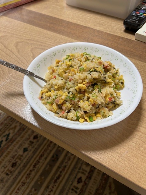 チャーハン。 2026.02.07 こんにちは!入部です! 少し前、暇だし小腹が空いたのでチャーハンを作りました。 今回は高菜、カニカマ入りのやつを作りました。 非常に美味しかったです。 以前、豚キムチチャーハンを作った際、キムチの炒め具合が悪くすっぱいのができて以来、チャレンジできてないので今度もう一度作ろうと思います。 みなさんは何チャーハンが好きですか?ぜひ教えてください。 気が向いたら作りますので。 « 前の記事へ 次の記事へ »